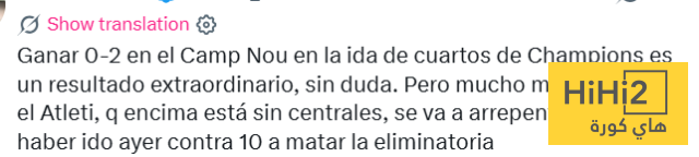 الفوز 2 – 0 على ملعب كامب نو في ذهاب ربع نهائي دوري أبطال أوروبا يعد بلا شك نتيجة استثنائية لكنني أخشى أن يندم أتلتيكو مدريد ، الذي يفتقد أيضا لمدافعيه على عدم بذل قصارى جهده أمام عشرة لاعبين أمس لحسم التأهل لنصف النهائي .