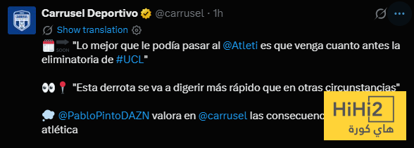 ” أفضل ما يمكن أن يحدث لأتلتيكو مدريد هو أن تأتي مباراة دوري ابطال اوروبا ( ضد ارسنال ) في اقرب وقت ممكن “