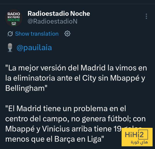 ” ريال مدريد لديه مشكلة في خط الوسط ، لا يصنع اللعب ، ومع وجود كيليان مبابي وفينيسيوس جونيور سجل في الدوري أقل بـ 19 هدف من برشلونة “.
