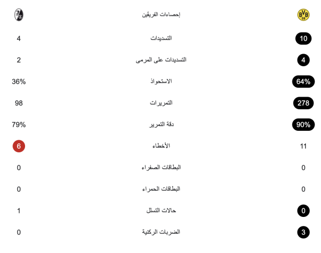 إحصائيات الشوط الأول لمباراة بوروسيا دورتموند وفرايبورغ