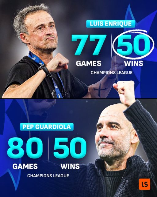 حيث أكد موقع لايف سكور أن إنريكي بعد هذا الفوز أصبح أسرع مدرب يصل لـ50 انتصار في الأبطال مع أقل عدد من المباريات بـ77 مباراة، متفوقًا على بيب جوارديولا الذي حقق هذا الإنجاز خلال 80 مباراة.