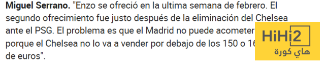 “المشكلة تكمن في أن مدريد لا يمكنه إتمام الصفقة لأن تشيلسي لن يبيعه بأقل من 150 أو 160 مليون يورو.”
