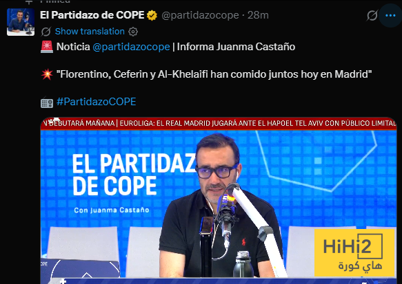 ” فلورنتينو بيريز وتشيفيرين ( رئيس اليويفا ) وناصر الخليفي تناولوا الغداء معا اليوم في مدريد ” .