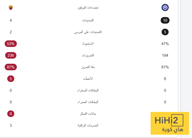 احصائيات الشوط الاول من مباراة الانتر و روما