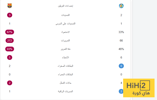 انتهت احداث الشوط الاول بتقدم فريق برشلونة امام نظيره خيتافي ، بهدف دون رد ، على ملعب الاخير ، صمن منافسات الجولة الـ33 من مسابقة الدوري الاسباني .