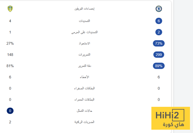 احصائيات الشوط الاول من مباراة تشيلسي و ليدز