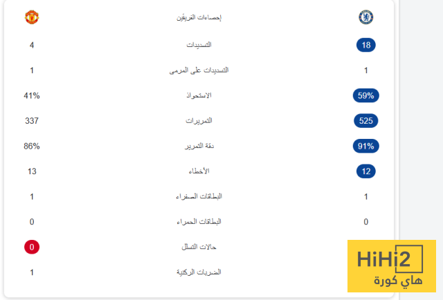 احصائيات قمة مانشستر يونايتد و تشيلسي في الدوري الانجليزي