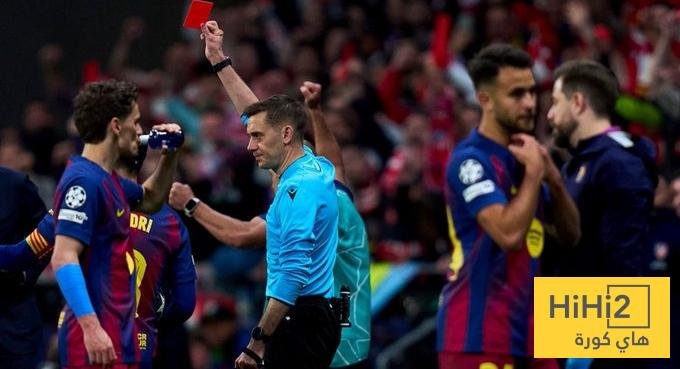 تلقى اريك غارسيا مدافع برشلونة بطاقة حمراء مباشرة في لقاء اتلتيكو مدريد ، مساء امس الثلاثاء ، وترك فريقه يلعب بنقص عددي قبل 11 دقيقة من انتهاء الوقت الاصلي لمباراة الاياب في دور ربع نهائي دوري الابطال .