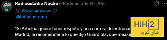 ” اذا كان أربيلوا يريد أن يحظى بالاحترام وان يبني مسيرة تدريبية خارج ريال مدريد ، فأنا انصحة بما قاله غوارديولا : أن يعتمد على نفسه ” .