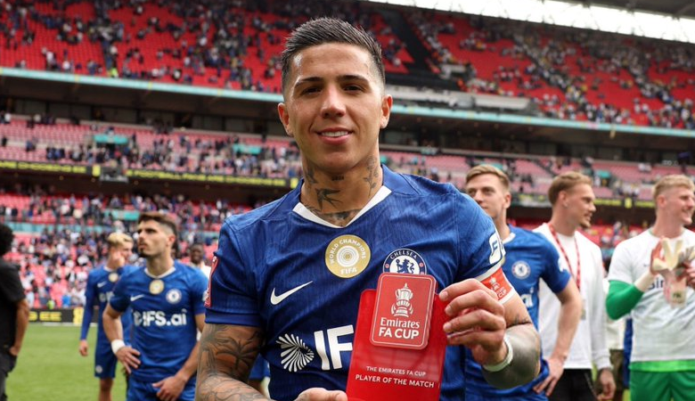 إنزو فيرنانديز لاعب تشيلسي حصل على جائزة رجل المباراة بعد تسجيله هدف فوز البلوز على ليدز وحسم بطاقة التأهل .