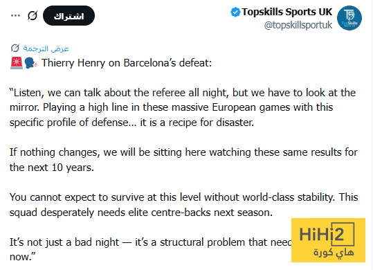 ” لا يمكنك أن تتوقع الصمود بهذا المستوى دون إستقرار من الطراز العالمي ، هذا فريق يحتاج بشدة إلى مدافعين مركزين من النخبة في الموسم القادم ” .