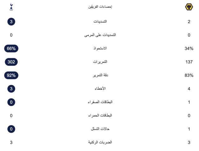 إحصائيات الشوط الأول: