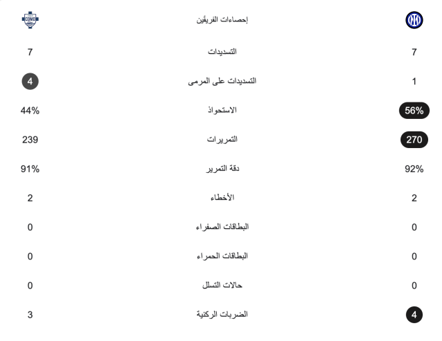 انقضى الشوط الأول من مباراة إنتر ميلان وكومو التي تجري في الدور نصف النهائي من كأس إيطاليا.