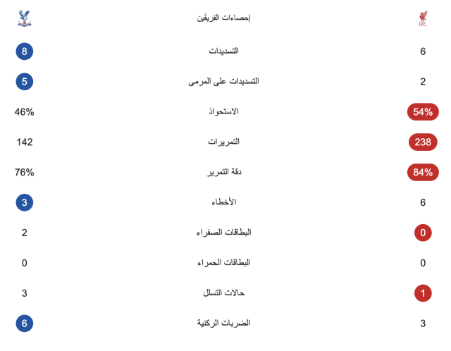 سجل هدفي الريدز ألكساندر إيزاك في الدقيقة 35، وأندرو روبرتسون في الدقيقة 40.