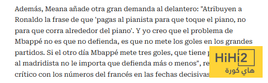 ” فإذا سجل مبابي 3 أهداف في المباراة الاخيرة وهو قادر على ذلك ، فإن جماهير ريال مدريد لا تبالي ان كان يدافع أكثر أم أقل ” .