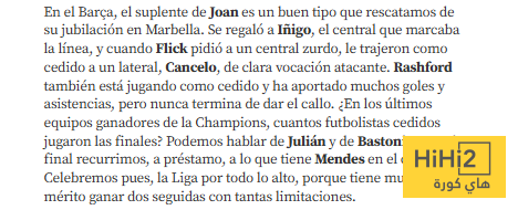 في النسخ الأخيرة للفرق الفائزة بدوري أبطال أوروبا كم عدد اللاعبين المعارين الذين شاركوا في النهائيات ؟ يمكننا الحديث عن جوليان وباستوني لكن في النهاية نلجأ إلى اللاعبين المعارين من قائمة مينديز لذا فلنحتفل بلقب الدوري على أكمل وجه لأن الفوز بلقبين متتاليين مع كل هذه القيود يعد إنجازا حقيقيا .