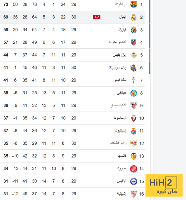 ترتيب الدوري الاسباني بعد نهاية لقاء ريال مدريد و مايوركا
