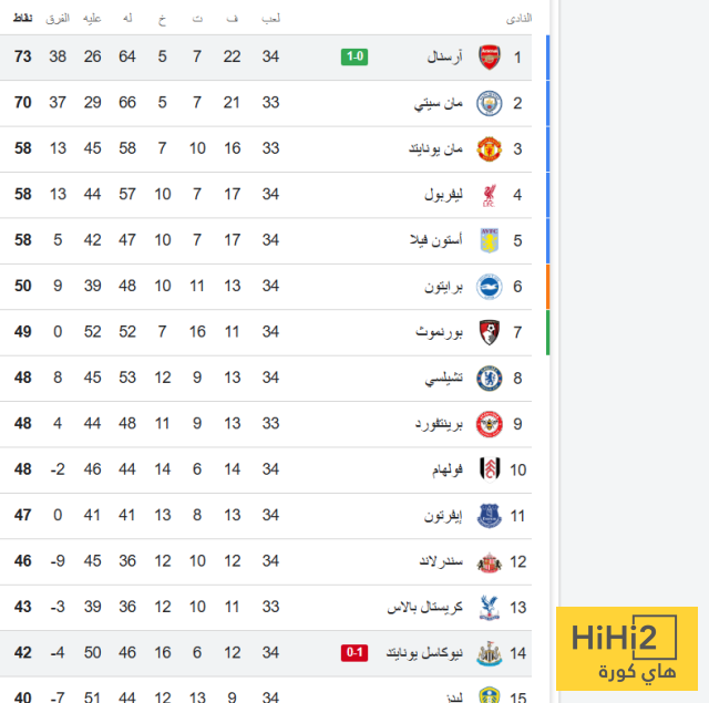 اليكم ترتيب البريميرليغ :