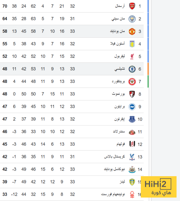 ترتيب الدوري الانجليزي بعد فوز تشيلسي على مانشستر يونايتد