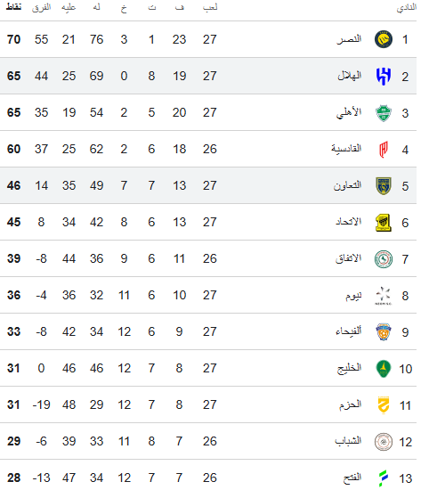 ترتيب دوري روشن عقب تعادل الهلال والتعاون 2-2
