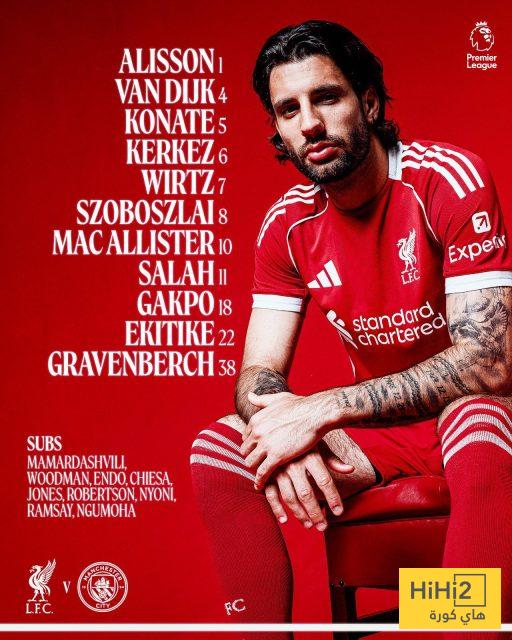 تشكيلة ليفربول الرسمية للقاء مانشستر سيتي