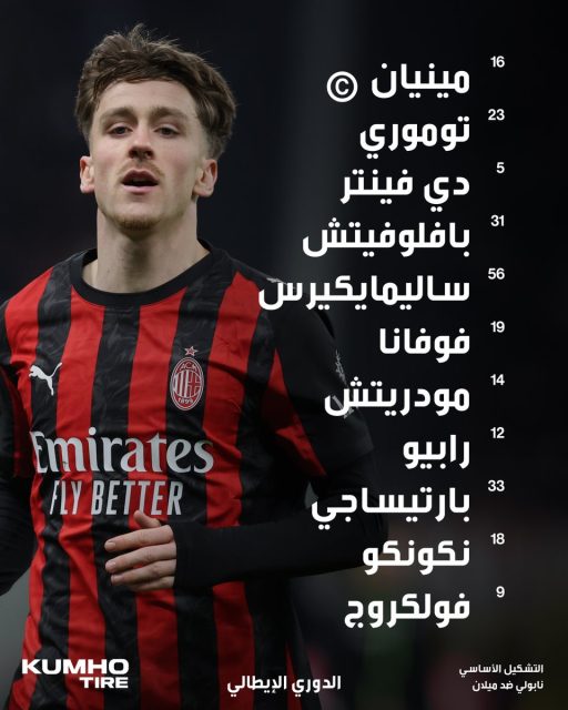 تشكيلة ميلان الرسمية ضد نابولي في الدوري الإيطالي