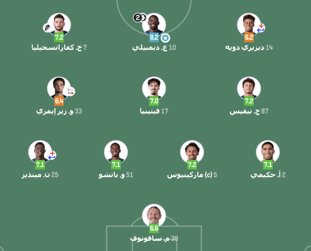قدم ديمبيلي مباراة قوية، ليحصل بشكل مستحق على التقييم الأعلى من موقع سوفا سكور العالمي.