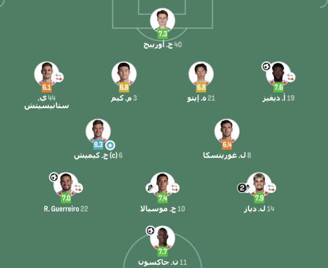 قدم كيميتش أداءً كبيرًا ساعد به فريقه في الحصول على النقاط الثلاث بالفوز برباعية مقابل هدفين، ليحصل على التقييم الأعلى من موقع سوفا سكور.