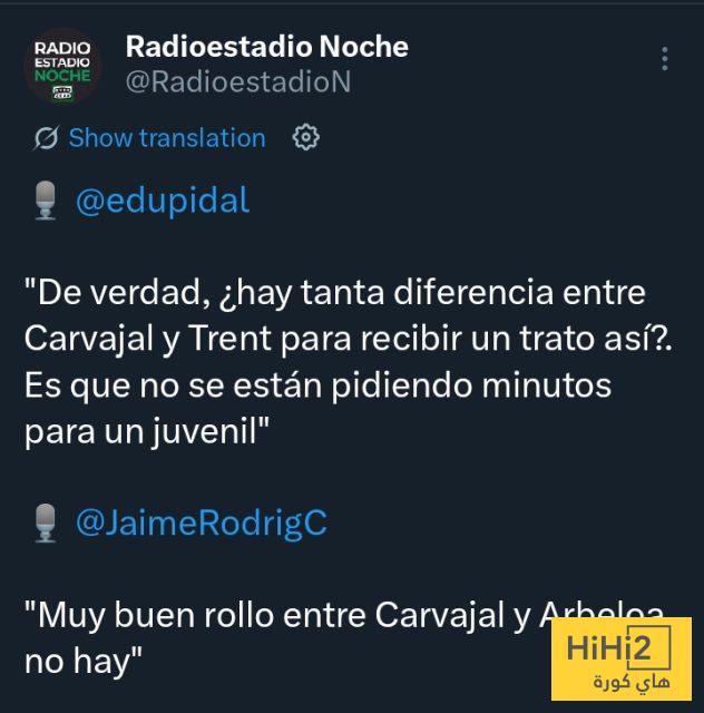 حديث للصحفي بيدال : ” بصراحة ، هل هناك فرق كبير بين كارفخال وترينت ليتم التعامل معه بهذه الطريقة ؟ الموضوع ليس طلب دقائق للاعب شاب “.