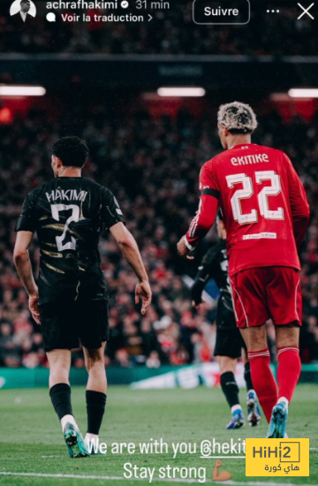 ساند أشرف حكيمي ، لاعب باريس سان جيرمان ، نظيره بليفربول، هوجو إيكيتيكي ، وذلك بعد أن تعرض الأخيرة للإصابة أثناء خوض المواجهة التي جمعت الطرفان سوياً ، على هامش مباريات ربع نهائي دوري أبطال أوروبا 2025-2026 .
