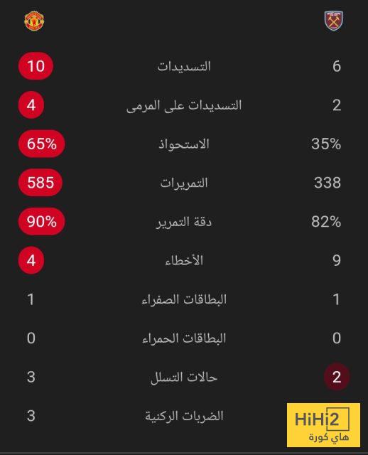 إليكم إحصائيات مباراة مانشستر يونايتد و وست هام :