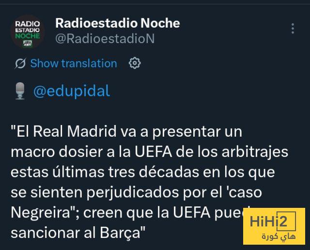 ” ريال مدريد سيقدم ملف ضخم إلى الاتحاد الأوروبي لكرة القدم (يويفا) حول التحكيم خلال العقود الثلاثة الأخيرة ، والتي يشعر فيها بأنه تعرض للظلم في قضية نيغريرا ويعتقدون أن اليويفا قد يعاقب برشلونة “.
