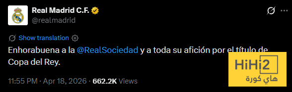 ووجه نادي ريال مدريد رسالة تهنئة لنادي ريال سوسداد عقب الفوز عبر الحساب الرسمي :