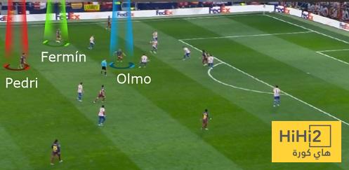” بيدري ، فيرمين لوبيز وداني أولمو يضربون باستمرار المساحات من خلف ماركوس يورينتي وكوكي “.