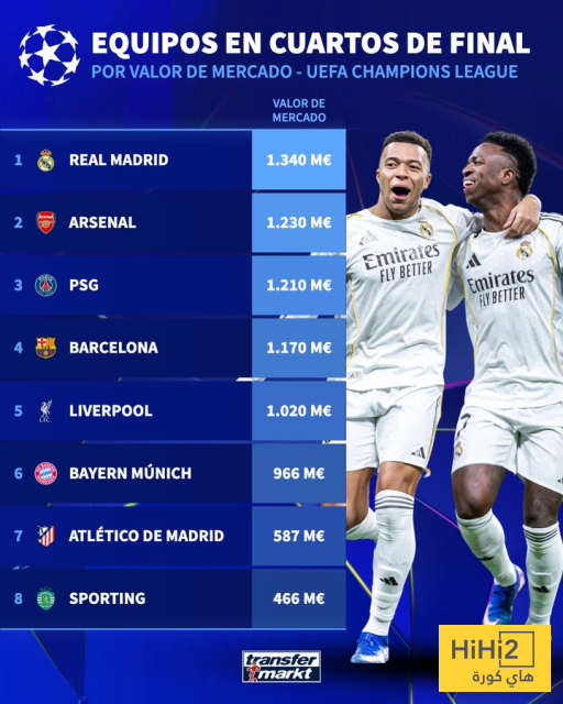 كشف موقع ترانسفير ماركت عن القيمة السوقية للأندية المتواجدة في ربع نهائي دوري أبطال أوروبا ، وجاءت النتائج على النحو التالي: