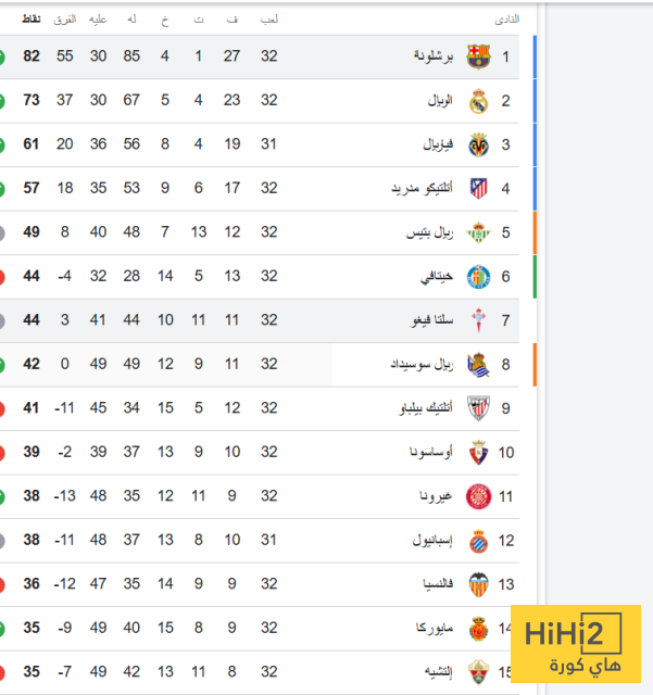 اليكم ترتيب الليغا :