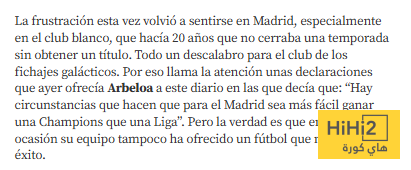 عاد الإحباط ليخيم على مدريد وخاصة على الريال ، بعد موسم يعد من الأسوأ في السنوات الأخيرة حيث سينهي الفريق موسمه دون تحقيق أي لقب، وهو أمر لم يحدث منذ نحو 20 عاما لذا فإن تصريحات أربيلوا أمس تعد لافتة للنظر حيث قال : “هناك ظروف تجعل فوز ريال مدريد بدوري أبطال أوروبا أسهل من فوزه بلقب الدوري الإسباني” لكن الحقيقة هي أن فريقه لم يقدم في هذه المناسبة الأداء الذي يستحق النجاح .