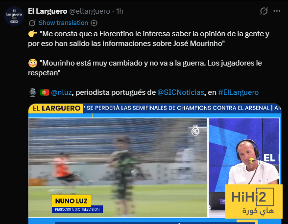 ” اعلم يقينا ان فلورنتينو مهتم بمعرفة آراء الناس ، ولهذا السبب ظهرت التقارير عن جوزيه مورينيو “