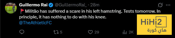 ” تعرض ايدير ميليتاو لإصابة طفيفة في العضلة ذات الرأسين بالفخذ اليسرى “