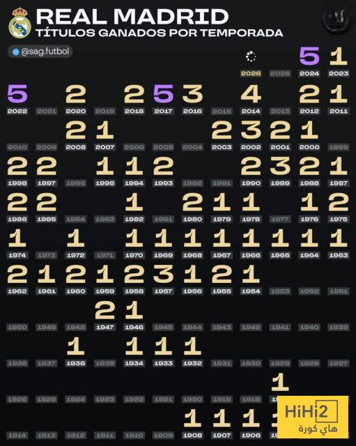 منذ تأسيسه عام 1902 ظل ريال مدريد يتوج بلقب على الاقل خلال 63 موسما من تاريخه مقابل 60 موسما صفريا .