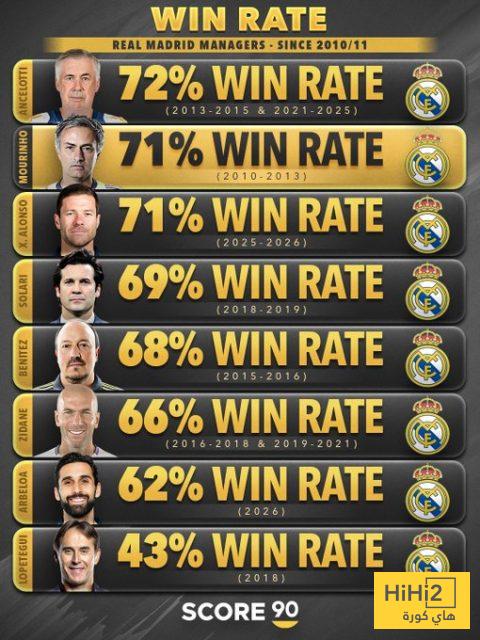 مورينيو يملك ثاني أفضل نسلة انتصارات بعد كارلو أنشيلوتي، ويعادل نسبة تشابي ألونسو.
