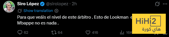 ” حتى تروا مستوى هذا الحكم ( البيرولا روخاس ) ، ما فعله لوكمان يعتبر خطأ ، أما ما حدث ضد مبابي فلا شيء ” .
