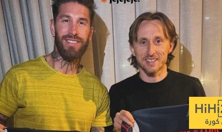 راموس ظهر مرتديًا قميص مودريتش مع ميلان، بينما ارتدى الكرواتي قميص راموس مع رايادوس، وأرفقها القائد السابق برسالة مؤثرة: «دائمًا سعادة كبيرة أن أراك يا أخي… وإلى المزيد من لحظاتنا».