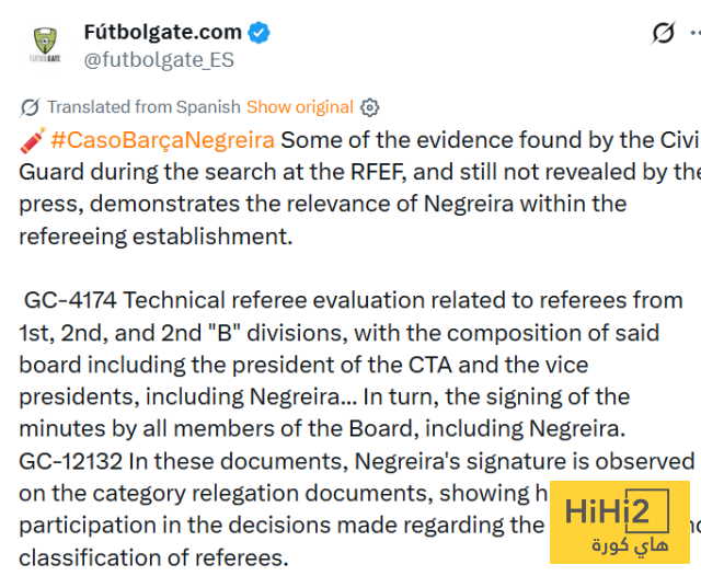 نشر موقع Fútbolgate.com جزء من الأدلة التي عثرت عليها الحرس المدني خلال التفتيش في الاتحاد الإسباني لكرة القدم ، والتي لم يتم الكشف عنها بعد من قبل الصحافة حيث تظهر مدى أهمية نيغريرا داخل المنظومة التحكيمية .
