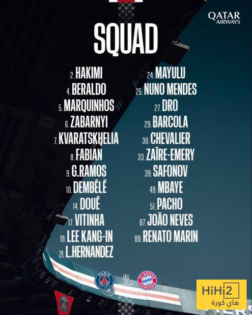 وإليكم قائمة باريس سان جيرمان لمواجهة بايرن ميونخ: