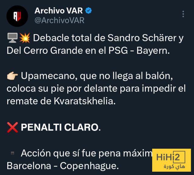 وفقًا لمنصة أرشيف الفار ، انهيار تحكيمي كامل من ساندرو شارير وديل سيرو غراندي في مباراة باريس سان جيرمان ضد بايرن ميونيخ .