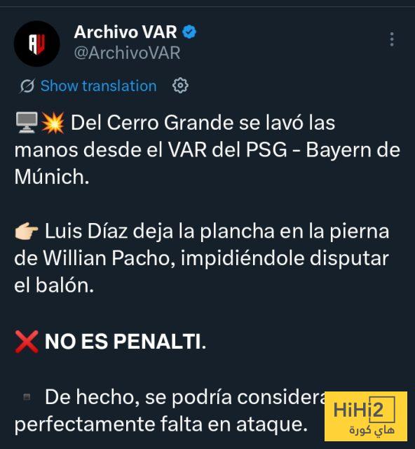 وفقًا لمنصة أرشيف الفار ، ديل سيرو غراندي ” غسل يده ” من المسؤولية عبر تقنية الـ VAR في لقاء باريس سان جيرمان أمام بايرن ميونيخ .