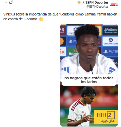 تحدث أن فينسيوس جونيور ، لاعب نادي ريال مدريد ، عن أهمية أن يتحدث لاعبون مثل لامين يامال ، لاعب برشلونة ضد العنصرية .