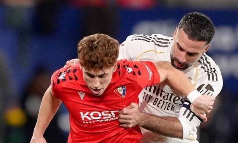 هاي كورة- عانى داني كارفخال قائد ريال مدريد وظهير أيمن الفريق من صعوبة مجاراة سرعة فيكتور مونيوز لاعب الفريق الملكي السابق ونجم أوساسونا الحالي.