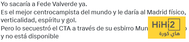 كنت سأشرك فيدي فالفيردي أمام مايوركا ، إنه أفضل لاعب خط وسط في العالم وسيضفي على ريال مدريد قوة بدنية ومهارة هجومية وروحا قتالية وقدرة على تسجيل الأهداف لكن لجنة الحكام سلبته من الريال عبر مساعدها مونويرا مونتيرو ، ولم يكن متاح .